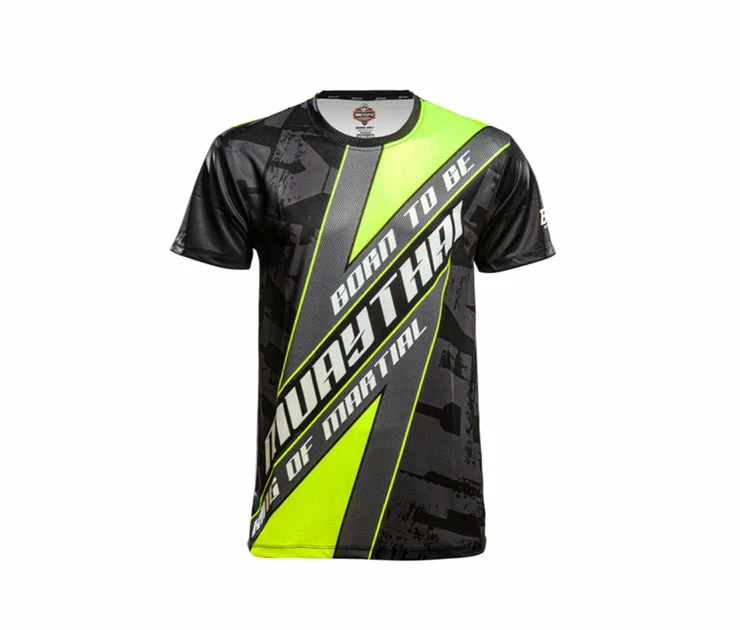 Born Sport “Never Give Up” Training shirt is made in Thailand  with a sweat wicking antibacterial material.