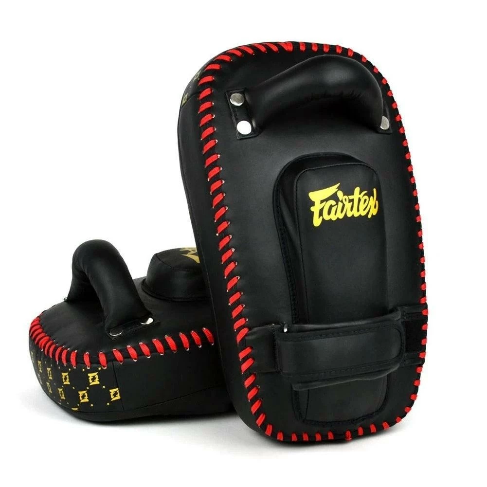 Fairtex KPLC6 Lightweight Kick Pads feature a single strap design and extra padding to support the forearm. These pads are built with quality microfiber and premium cowhide leather.