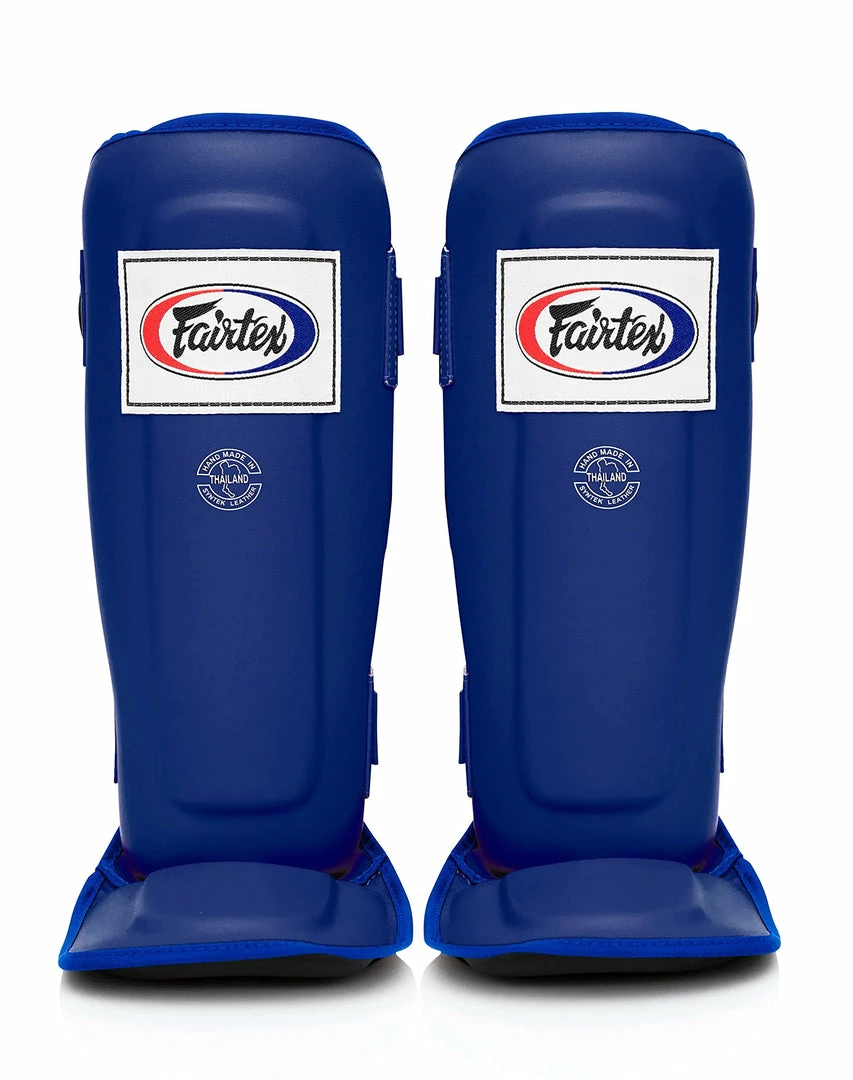 SP3 Fairtex Black Double Padded Shin PadsConstructed of Fairtex durable Syntek Leather with triple layers of high impact foam core, hard on the outer layer and soft on the inner layer, for maximum shock disbursement. Contoured, form-fitting design for natural feel with fully adjustable leg hook & loop closure straps. Extended in-step with elastic band strap for maximum secure fit, comfort and protection Durable cotton stretch denim lining to prevent slipping.