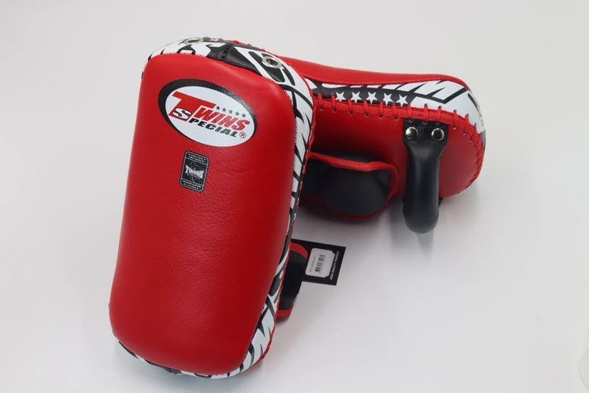 The Twins Special Deluxe Wrist Support Muay Thai Pad is designed for maximum safety and support for trainers during hard training sessions. These pads feature padding under the wrist providing unparalleled wrist support for the pad holder. It comes with a convenient Velcro arm lock that provides a great fit and allows for quick transitions from one training scenario to the next. This Muay Thai Pad is ideal for training round kicks, knee strikes, and overall striking; it can be used in conjunction with a Twins Special Belly Protector and punching mitts. These durable, long-lasting Muay Thai pads will give you the performance and resilience that world-class competitors require. Its quality craftsmanship and rugged design are unmatched. Whatever your training goals are in Muay Thai, western boxing, MMA, or personal self-defense, Twins Special Muay Thai Pads will help you get there. Twins Special Fight Gear sets the standard for craftsmanship, functional design, and aesthetic appeal. Our Muay Thai Pads are made from 100% leather and top-of-the-line high density padding.