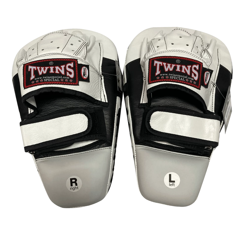 Long style focus mitts from Twins Special designed for versatile training of punches and kicks. Ball grip on palm and thick padded wrist for maximum comfort. Velcro strap for secure fit. Open fingers for ventilation. Made from high grade Thai leather.